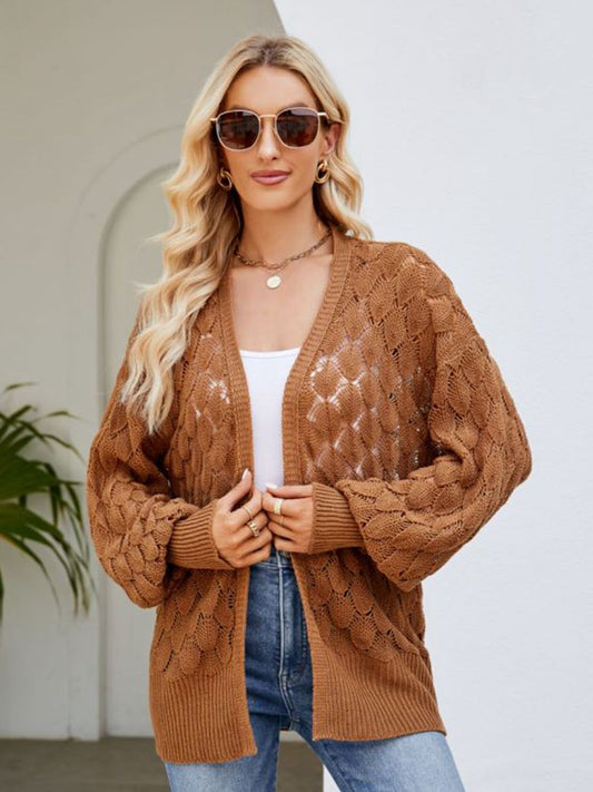Sold outOpenwork Rib-Knit Slit Cardigan
