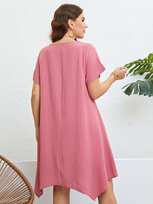 Plus Size Short Sleeve Surplice Neck Midi Dress