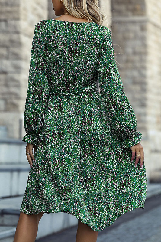 Printed Flounce Sleeve Tied Dress