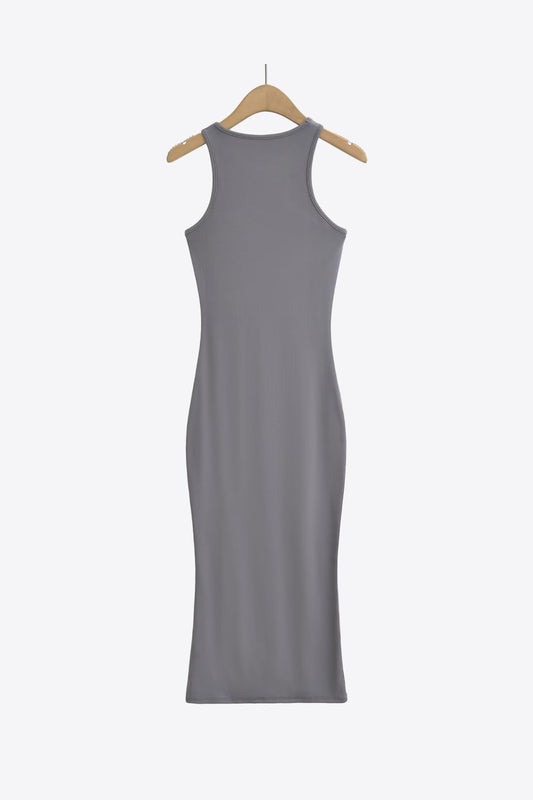 Round Neck Slit Sleeveless Dress