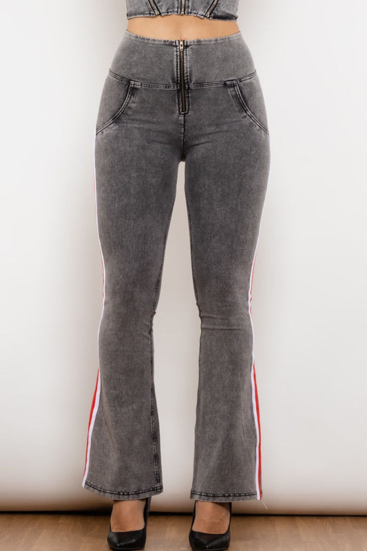 Side Stripe High Waist Zip Closure Jeans