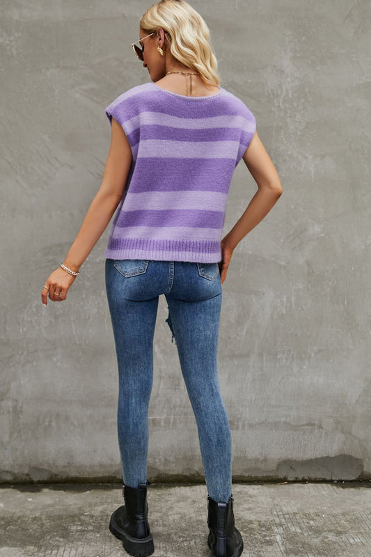 Striped Round Neck Cap Sleeve Knit Top