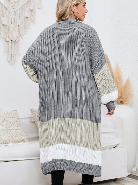 Color Block Rib-Knit Longline Cardigan with Front Pockets