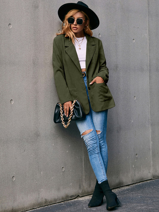 Corduroy Long Sleeve Longline Blazer with Pockets