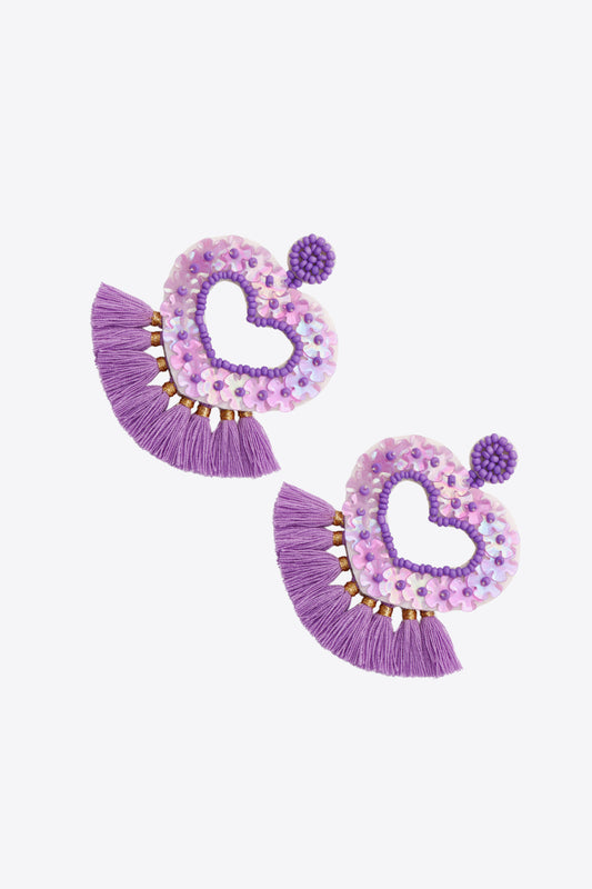 2-Pair Boho Style Heart Tassel Dangle Earrings