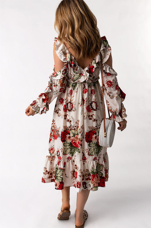 Sold outFloral Cold-Shoulder Ruffled Dress