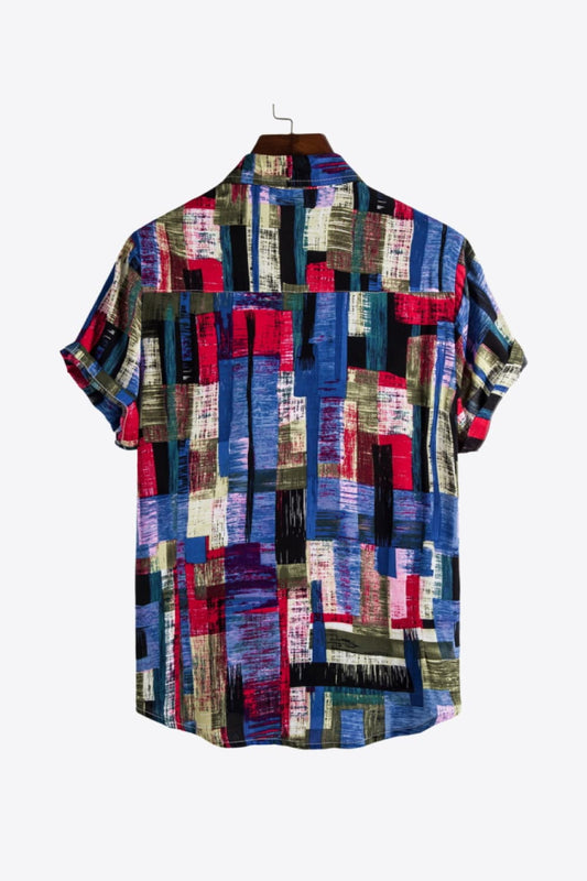 Full Size Multicolored Button-Up Curved Hem Shirt