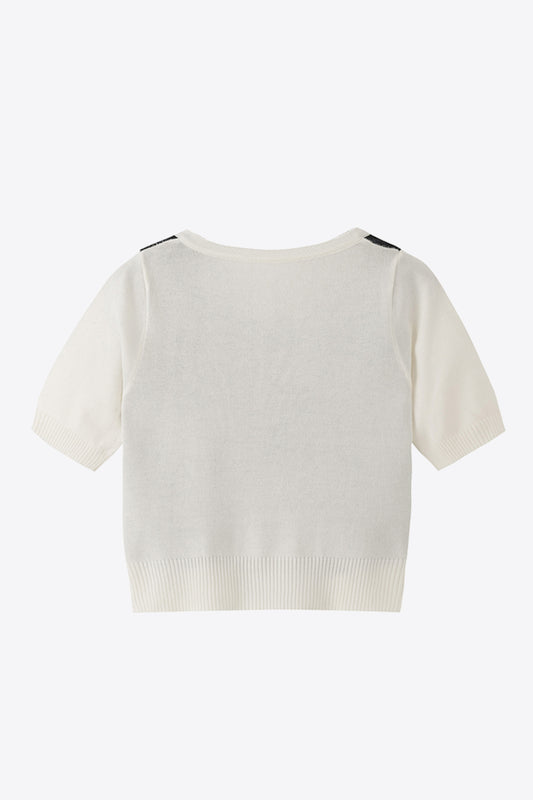 Asymmetrical Neck Top and Rainbow Print Shorts Set